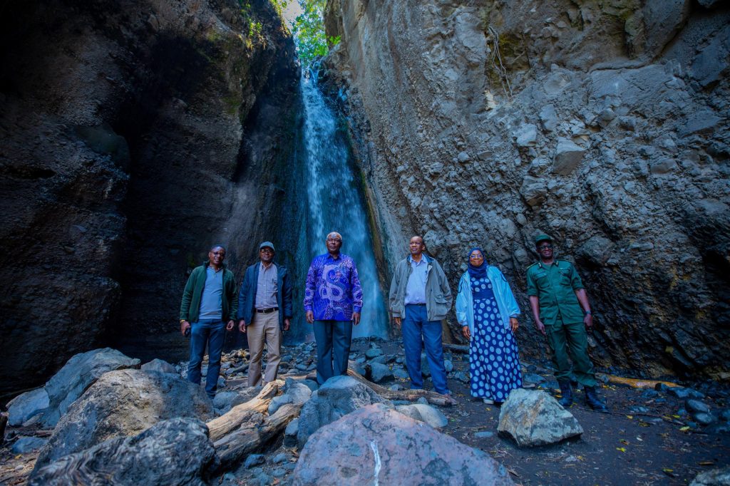 Wajumbe wa Bodi ya Wakurugenzi wa Shirika la Hifadhi za Taifa (TANAPA) wakiwa kwenye maporomoka ya maji.