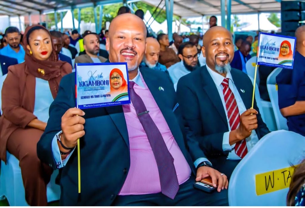 Wananchi na watumishi wa Mamlaka ya Usimamizi wa Bandari (TPA) waliofika kushuhudia uzinduzi wa mradi wa ujenzi wa matanki ya kupokea na kusambaza mafuta, iliyofanyika Kigamboni, Jijini Dar es Salaam.